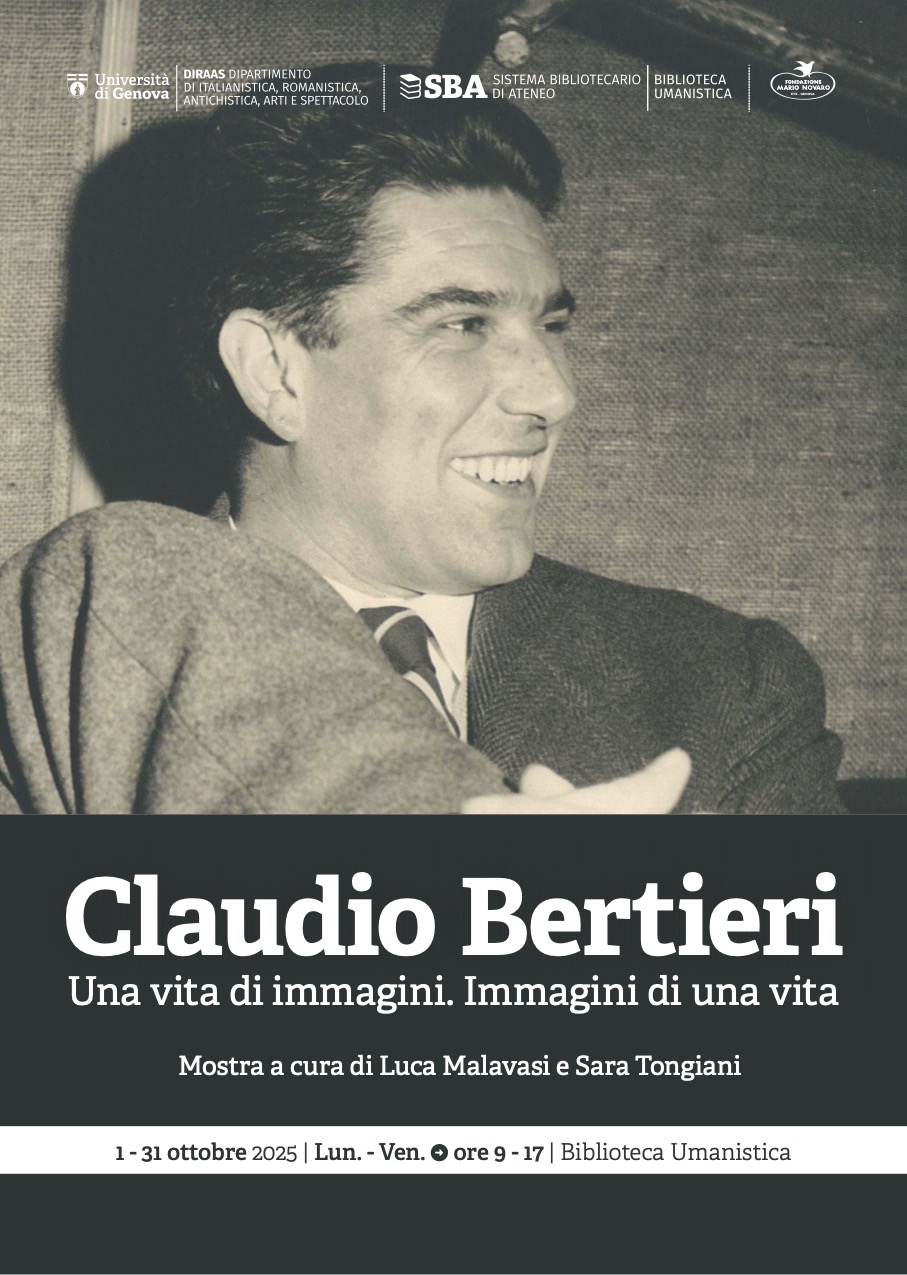 Nell’ambito della collaborazione fra la Fondazione Mario Novaro ETS e l’Università degli Studi di Genova, inaugurata nel 2024 e costellata da una serie di attività di promozione e diffusione del materiale d’archivio, la mostra Claudio Bertieri. Una vita di immagini. Immagini di una vita intende inserirsi fra gli eventi organizzati per celebrare il centenario della nascita del critico cinematografico, restituendo la complessità e la ricchezza del profilo professionale di Bertieri.