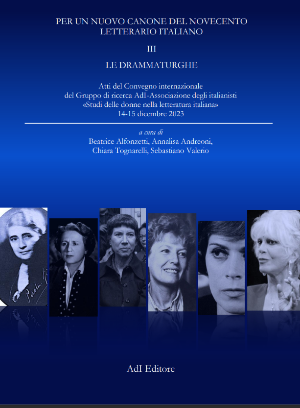 Per un nuovo canone del Novecento letterario italiano. III. Le drammaturghe, Atti del Convegno internazionale del Gruppo di ricerca AdI-Associazione degli Italianisti "Studi delle donne nella letteratura italiana", 14-15 dicembre 2023, a cura di Beatrice Alfonzetti, Annalisa Andreoni, Chiara Tognarelli, Sebastiano Valerio, Roma, AdI Editore, 2025.